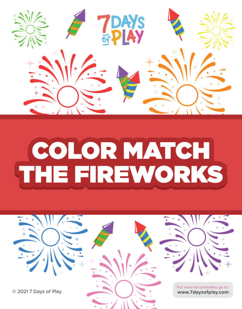 Color Match the Fireworks - Fun Printable. Get into the festive spirit of Independence Day and New Year's Eve with the Color Match the Fireworks printable worksheet. This free resource provides an exciting and engaging activity for children to celebrate these special occasions while practicing color matching skills.
