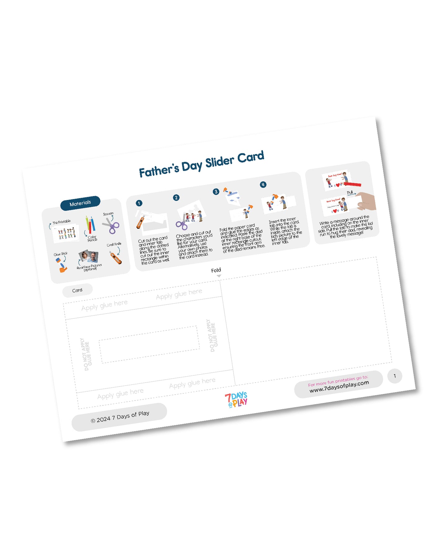 Celebrate Father's Day with a unique and interactive gift using our 'Father’s Day Slider Card - Printable.' This delightful activity allows kids to cut, build, and personalize a special card for their dad. The printable includes easy-to-follow instructions for creating a fun and engaging slider card that will bring a smile to any dad's face.