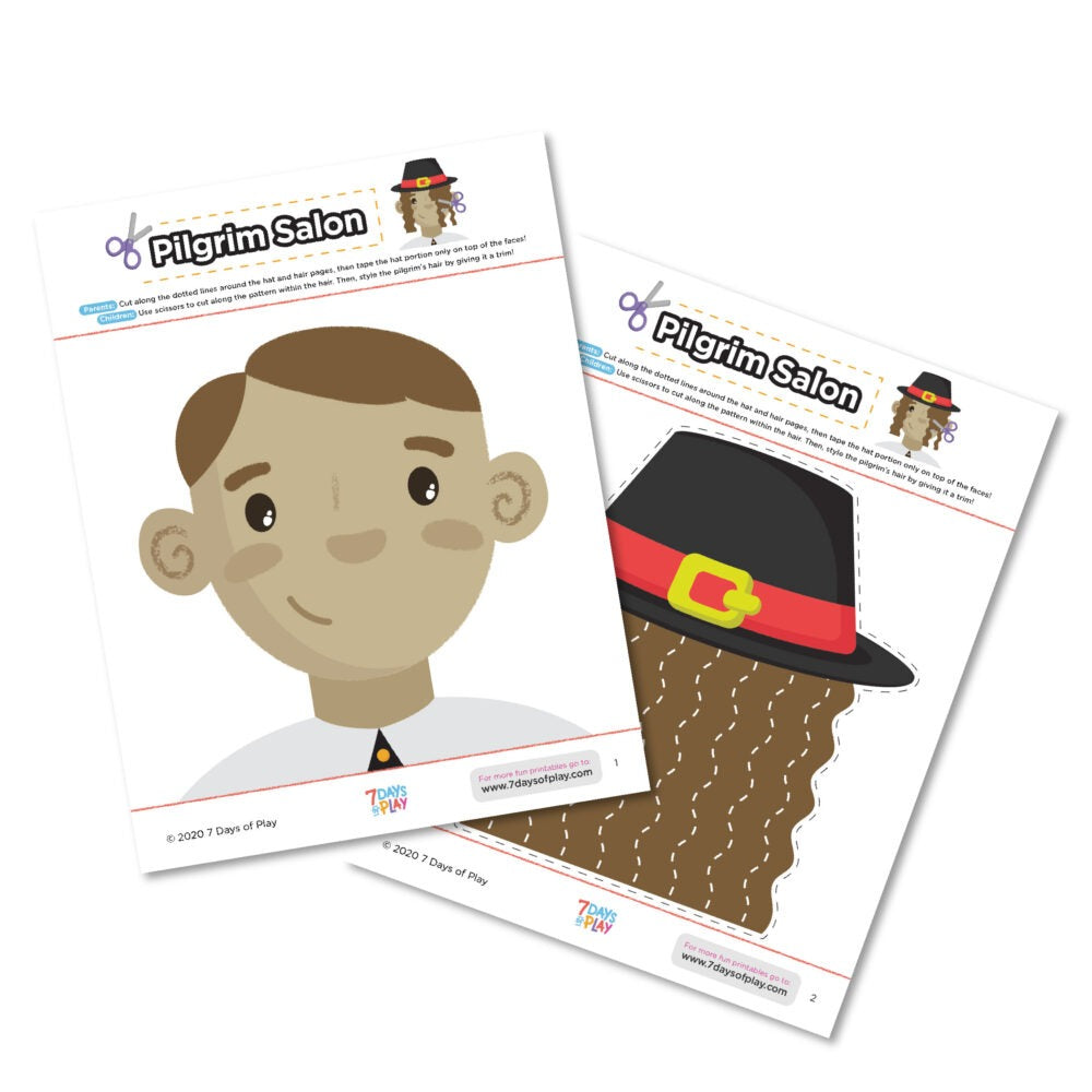 Introducing "Pilgrim Salon - Fun Printable for Kids," an engaging and interactive resource that combines scissor skills practice with a Thanksgiving-themed twist. This printable activity offers children a delightful opportunity to help the pilgrims get ready for their big Thanksgiving dinner by giving them a much-needed haircut.