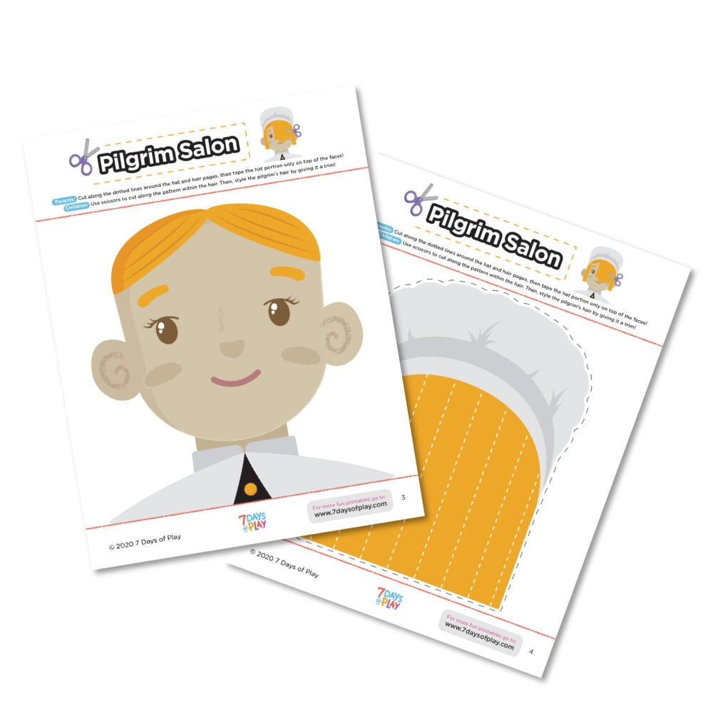 Unlock the excitement of creative hairstyling and scissor skills practice. Get the "Pilgrim Salon - Fun Printable for Kids" today and provide children with a Thanksgiving-themed activity that combines fun, creativity, and skill development.