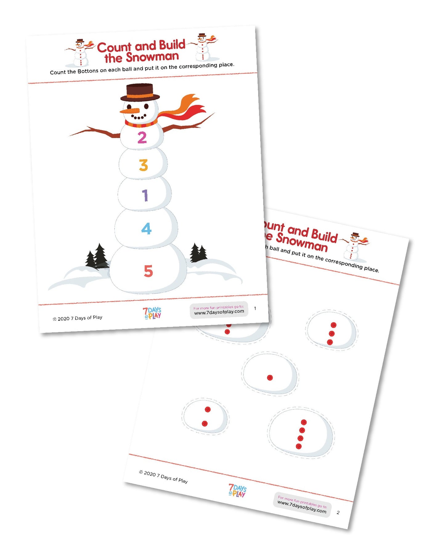Additionally, the printable features a snowman with torso balls numbered from 1 to 5. Furthermore, it includes separate snowballs with buttons, also numbered 1 to 5. As a result, children actively engage in learning by counting and matching, which reinforces their understanding of numbers. Consequently, this activity is not only enjoyable but also highly effective in teaching important math concepts. Count and Build the Snowman - Printable.