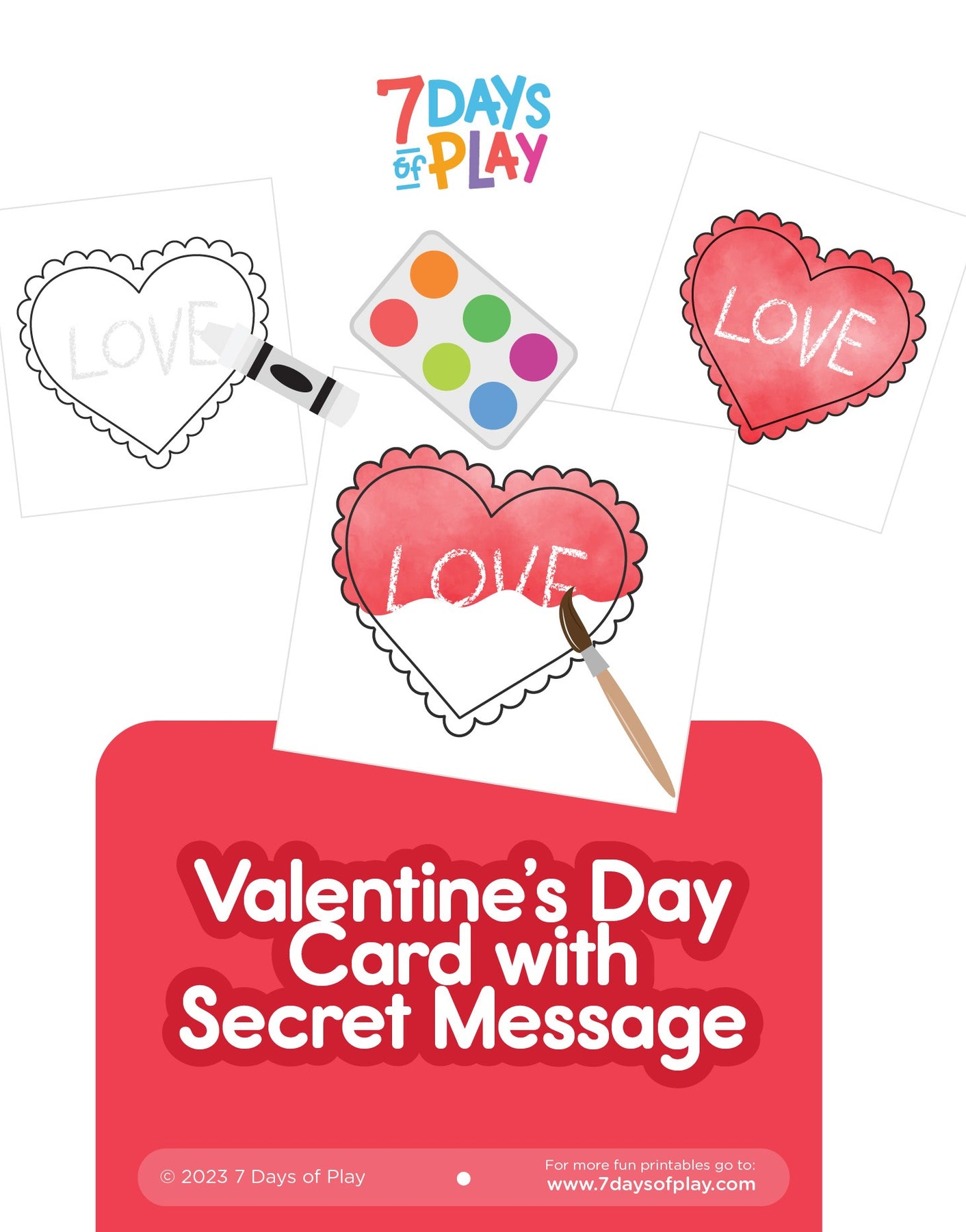 Surprise your loved ones with our ‘Valentine’s Day Card with Secret Message – Printable.’ Crafted for ages 2 and up, this interactive card reveals hidden messages with watercolor. A unique and heartfelt way to express love on Valentine’s Day.