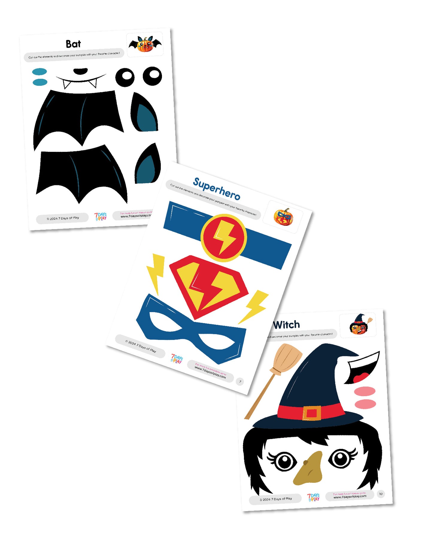 The set includes 10 different character templates, each featuring unique elements that can be cut out and attached to a real pumpkin. The character templates include a variety of fun options, such as a bear, unicorn, bat, witch, Dracula, Frankenstein, dinosaur, owl, superhero, and fox. Whether you're looking for a cute and friendly pumpkin or something a little more spooky, this set has everything you need to create eye-catching pumpkin designs that stand out.