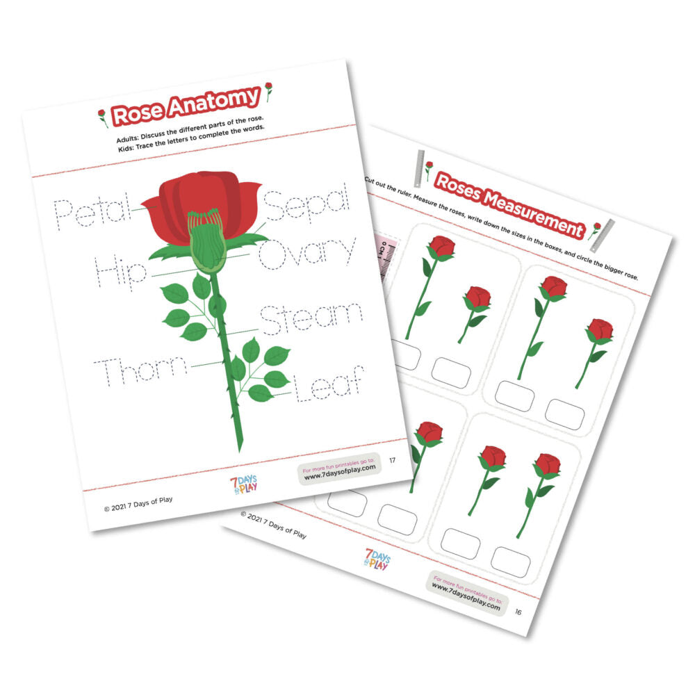 For a hands-on experience, children will cut out a ruler, measure the roses, write down the sizes in the designated boxes, and circle the larger rose. This activity promotes measurement skills and comparison, stimulating mathematical thinking. Download our 15+ Valentine's Day Activities - Printable.