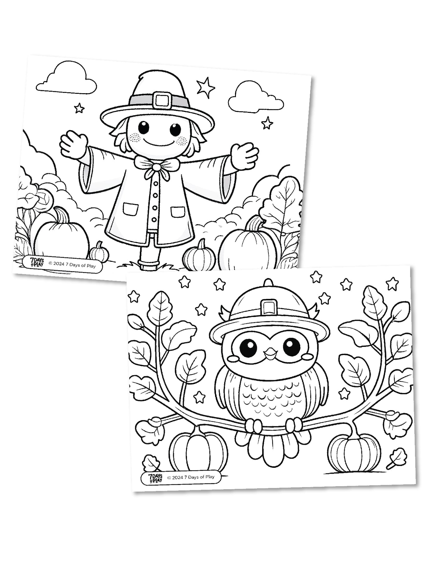 Embrace the charm of autumn with our “20 Fall Themed Coloring Pages - Printable,” a delightful collection that brings the essence of the season to life through art. Perfect for children and adults alike, this set features 20 unique and beautifully detailed coloring pages, each designed to spark creativity and provide a relaxing activity.Our fall-themed coloring pages include a variety of enchanting illustrations, such as a cute pumpkin, a fox amidst autumn leaves, a wise owl perched on a branch, and a turkey, symbolizing the festive spirit of the season. Additionally, you’ll find scenes depicting a basket of freshly picked apples, a playful squirrel gathering acorns, a vibrant sunflower field, and a cozy scene of pumpkin pie served with hot chocolate.These coloring pages are perfect for school activities, quiet home time, or therapeutic art sessions. Each page encourages users to explore their artistic side while celebrating the rich colors and textures of fall. The variety of designs ensures that everyone can find a page that resonates with them, making it a great way to unwind and embrace the season’s beauty.