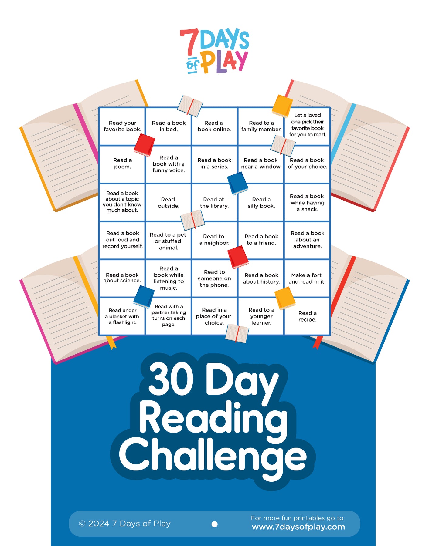 Download this printable today to give your child a diverse and enjoyable reading experience over 30 days. It's the perfect way to make reading a daily habit and to turn each reading session into an adventure.