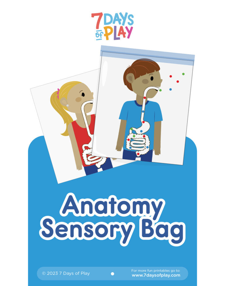 This printable is an excellent way to encourage children to learn about the human body in a fun and interactive way. It is a hands-on activity that will keep children engaged and excited about learning. With this printable, children will have the opportunity to explore the digestive system and gain a deeper understanding of how it works. Download our the Anatomy Sensory Bag.