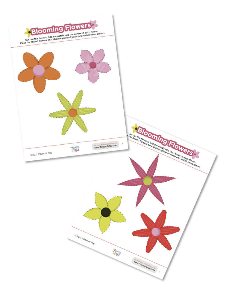 This blooming paper flower printable is the coolest! Just print it out, cut out the flowers, and then fold in the petals. When you place it down in a shallow dish of water, the flowers will magically bloom! This is a great way to talk about colors and the life cycle of the flower!