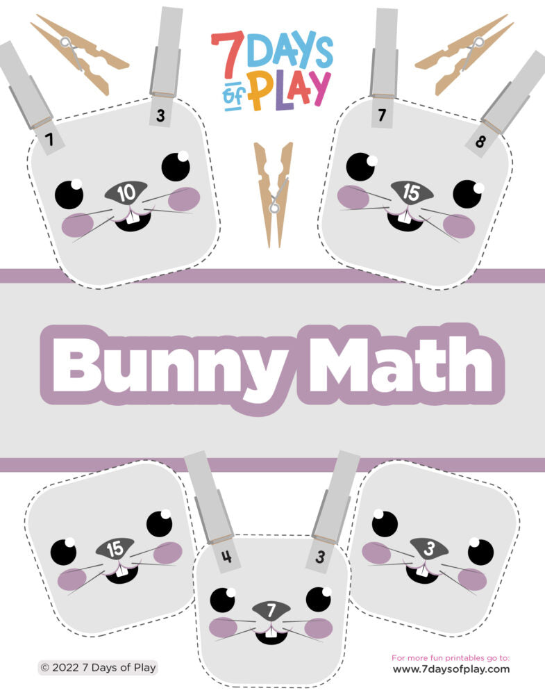 Bunny Math - Printable for Kids. This printable is a fun, hands on way to do math problems! First, cut out the paper bunnies. Then, write numbers on clothing pins and use them as "bunny ears" to solve the equations. This printable can be used for addition, subtraction, multiplication or division!