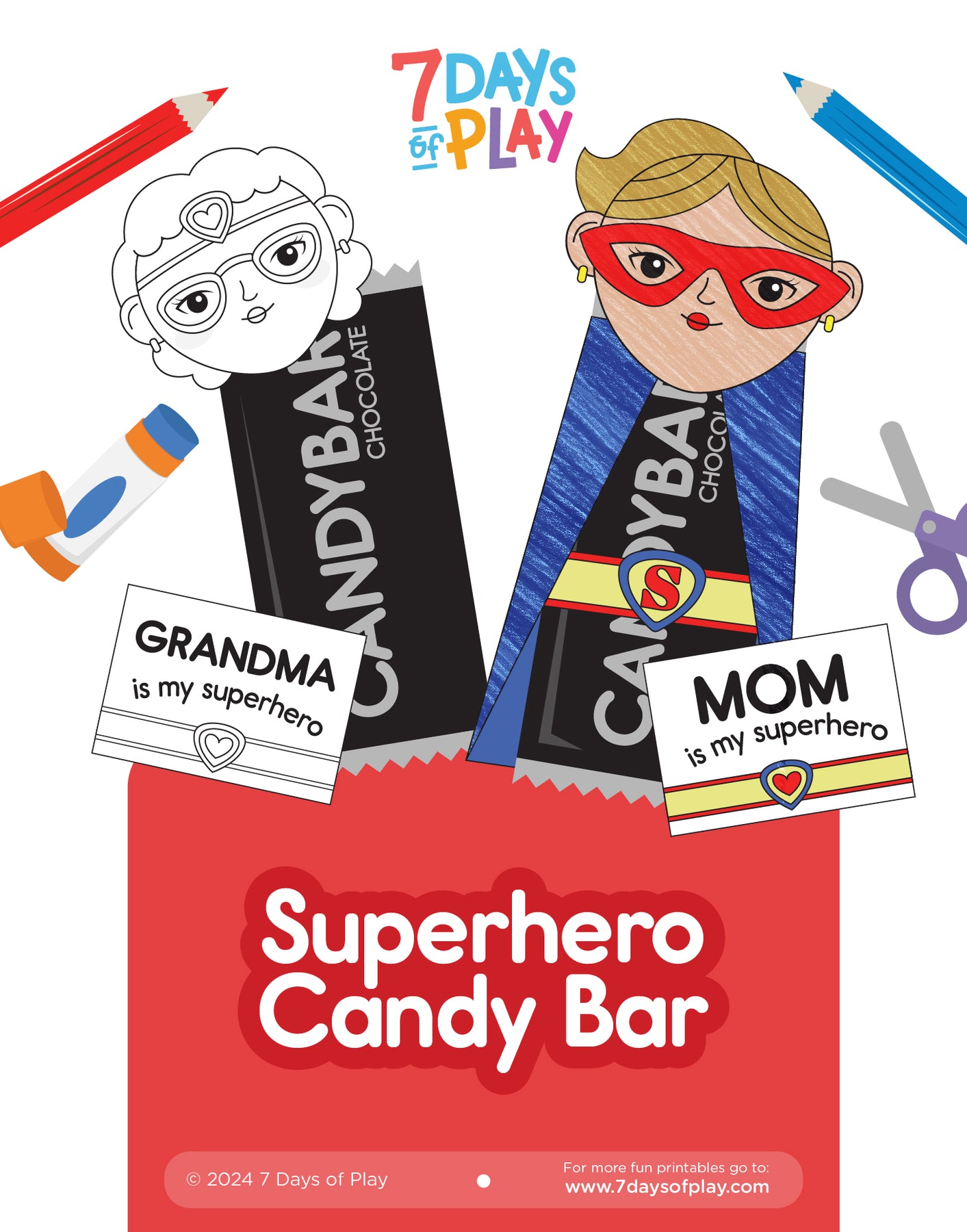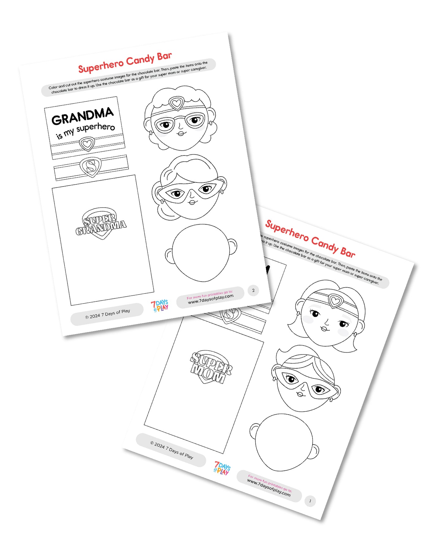 Elevate your Mother's Day celebration with our 'Superhero Candy Bar - Printable for Kids,' a delightful and creative way to honor the extraordinary moms and caregivers in your life. This printable offers a playful and imaginative twist on traditional candy bars, providing you with the tools to transform a simple treat into a superhero-themed gift that will bring joy and excitement.Start by printing and coloring the superhero costume images provided in the printable. With careful cutting, each element can be meticulously prepared to adorn the chocolate bar. From capes to masks to emblems, every detail adds a touch of superhero flair, making the chocolate bar a truly unique and memorable gift. Superhero Candy Bar - Printable for KidsOnce decorated, present the superhero candy bar to your super mom or caregiver as a token of appreciation and gratitude. Whether given on its own or as part of a larger gift, this sweet and thoughtful gesture is sure to make her feel loved and celebrated on Mother's Day.Download and print this printable today, and let your creativity soar as you craft a superhero-themed gift that honors the everyday heroes in your life. Celebrate Mother's Day in style with our Superhero Candy Bar - Printable for Kids.